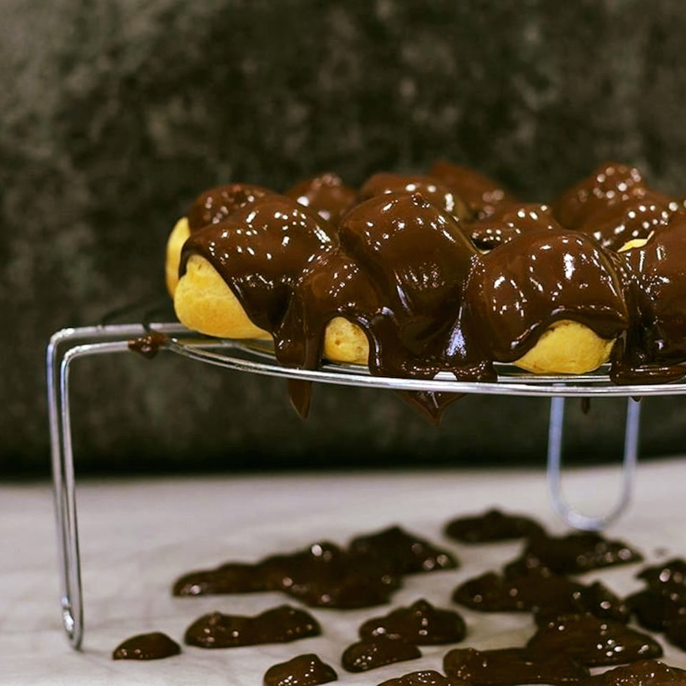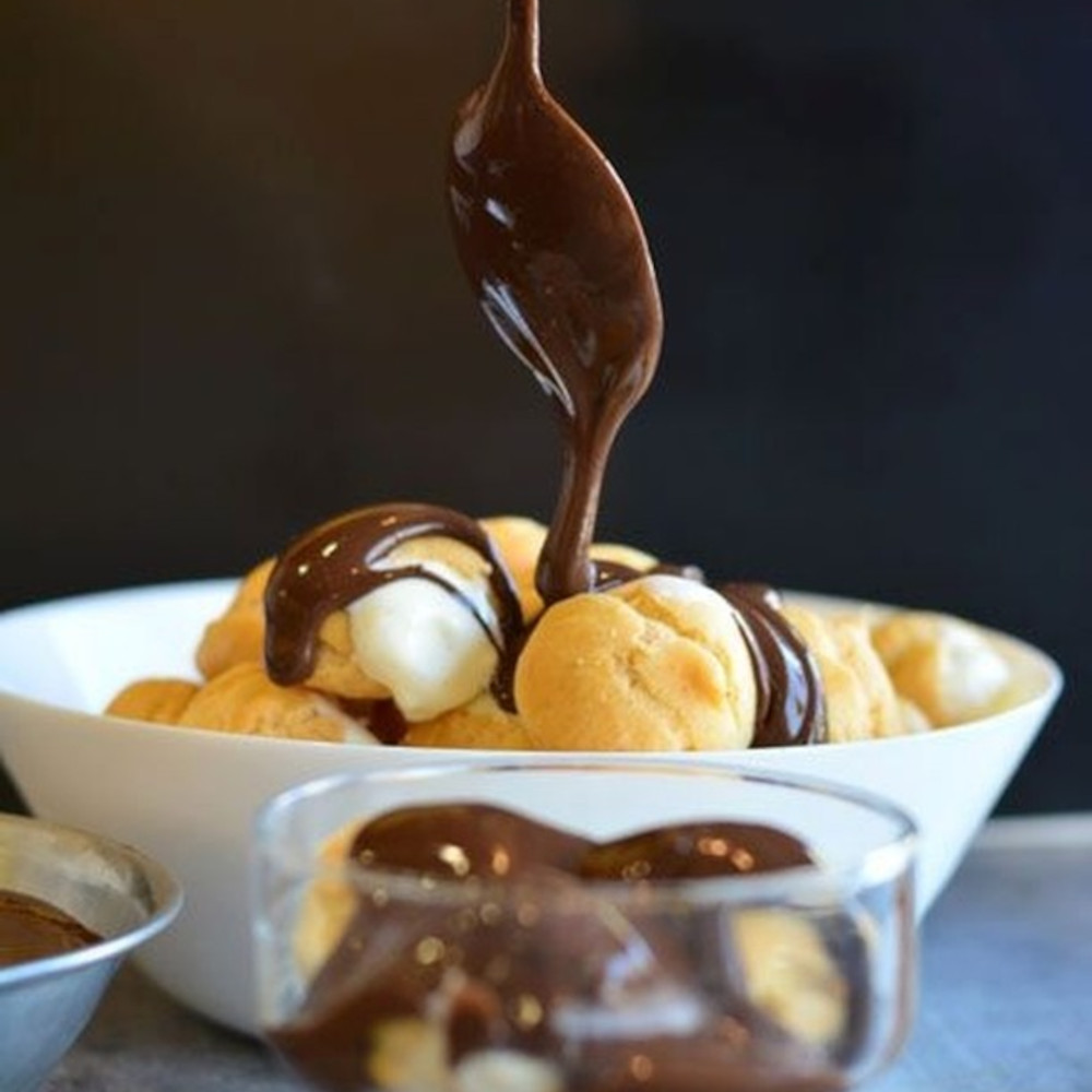 - Προφιτερόλ: Σου γεμισμένα με κρέμα ζαχαροπλαστικής, περιχυμένα με ρευστή σοκολάτα.