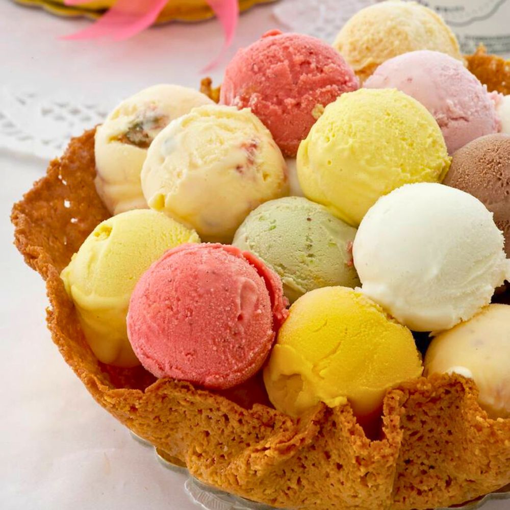 Χειροποίητα παγωτά σε διάφορες γεύσεις, όπως: βανίλια, σοκολάτα, mango, γιαούρτι, φυστίκι, παρφέ κρέμα, καϊμάκι, μπισκότο, cheese cake, πορτοκάλι.